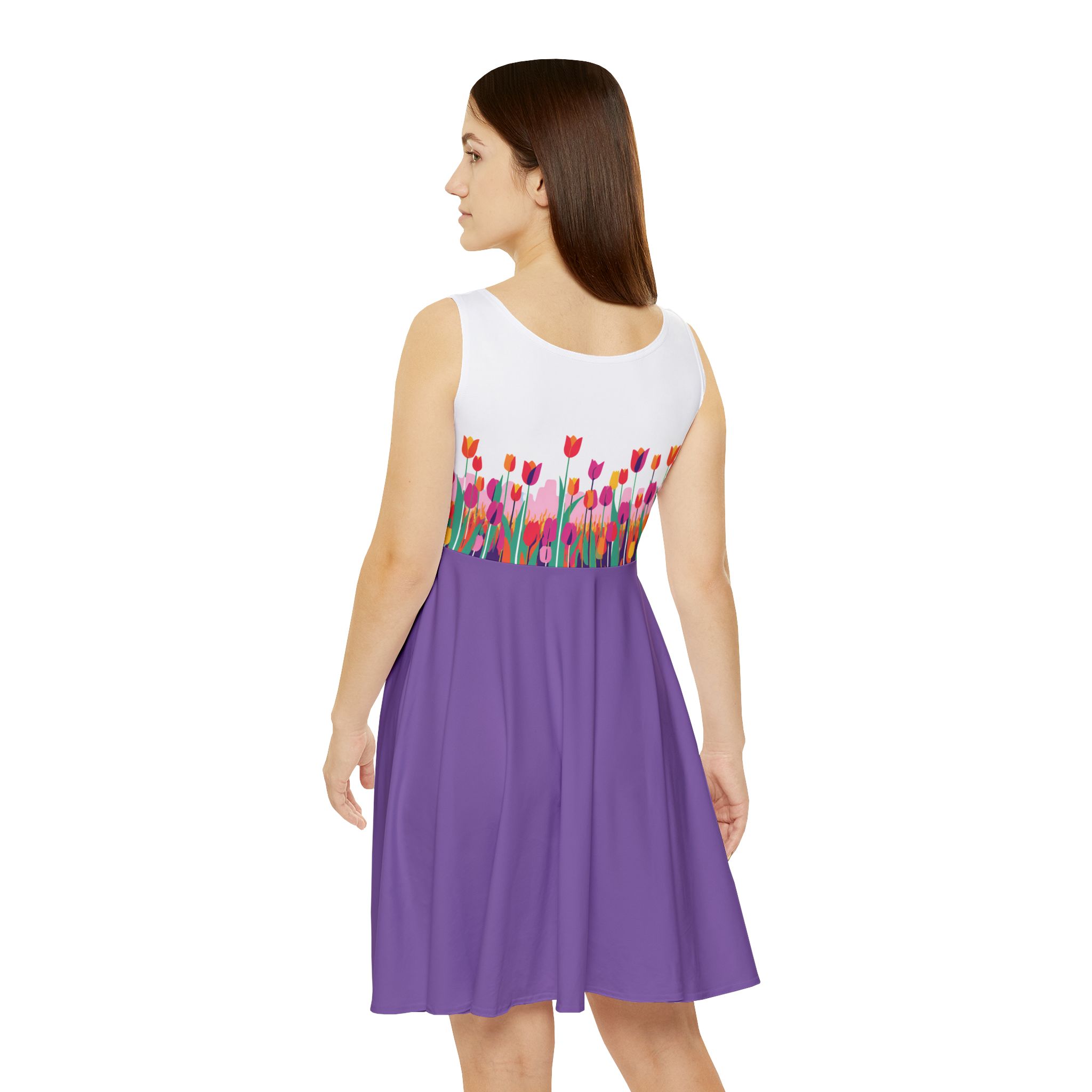 Floral Women's Skater Dress - Vibrant Spring Style for Everyday Wear (Purple)