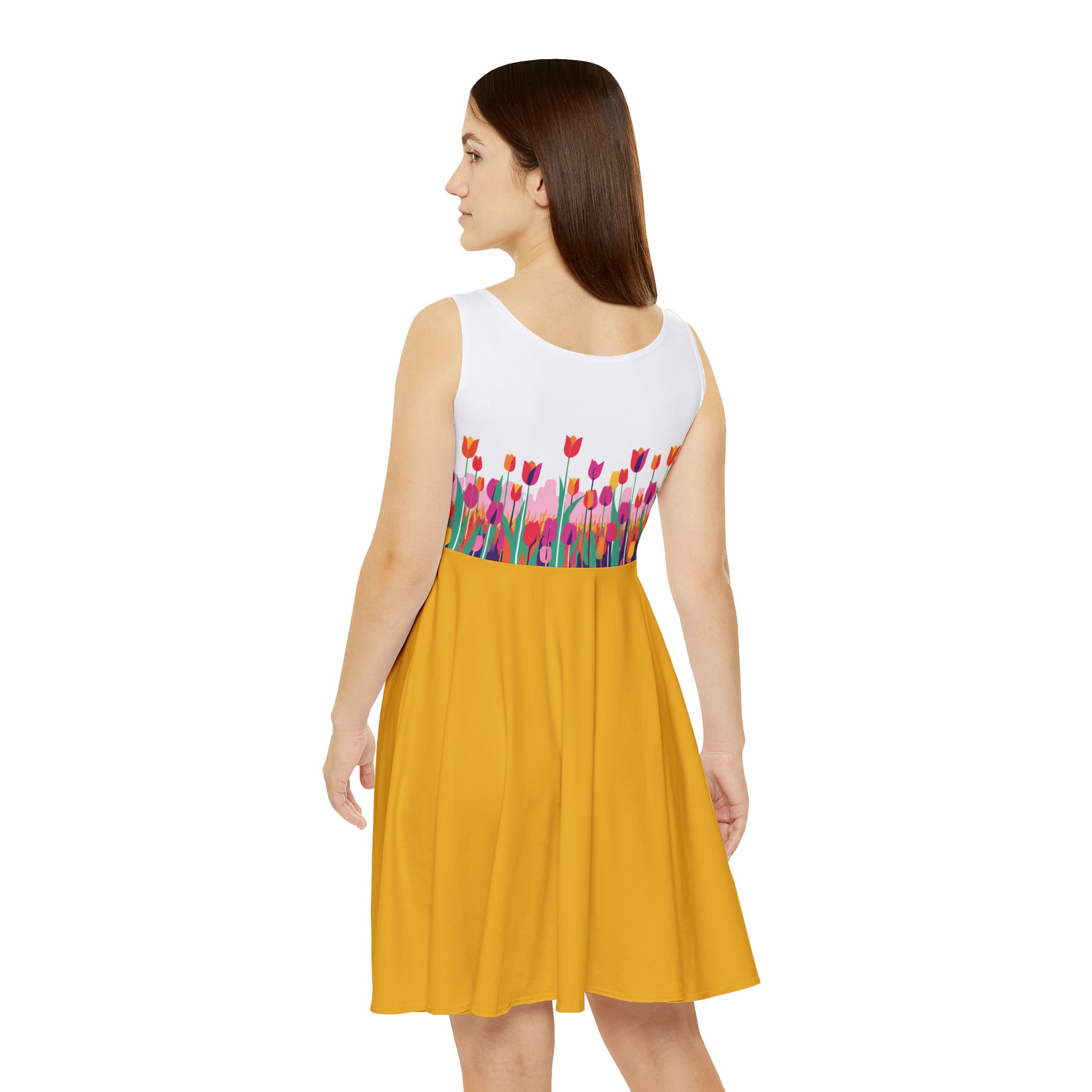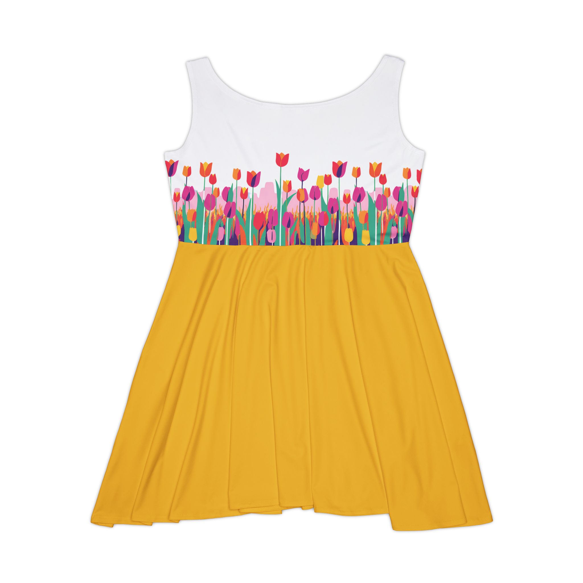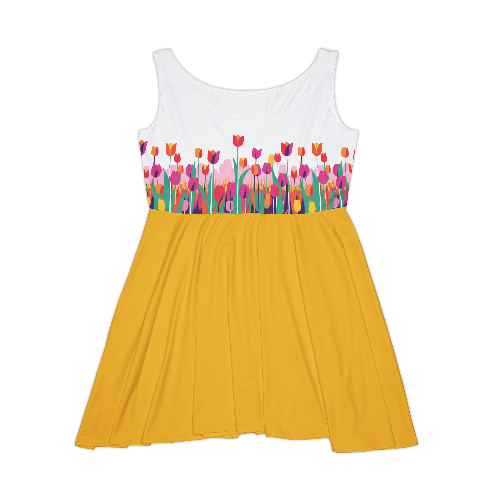 Floral Women's Skater Dress - Vibrant Spring Style for Everyday Wear (Yellow)