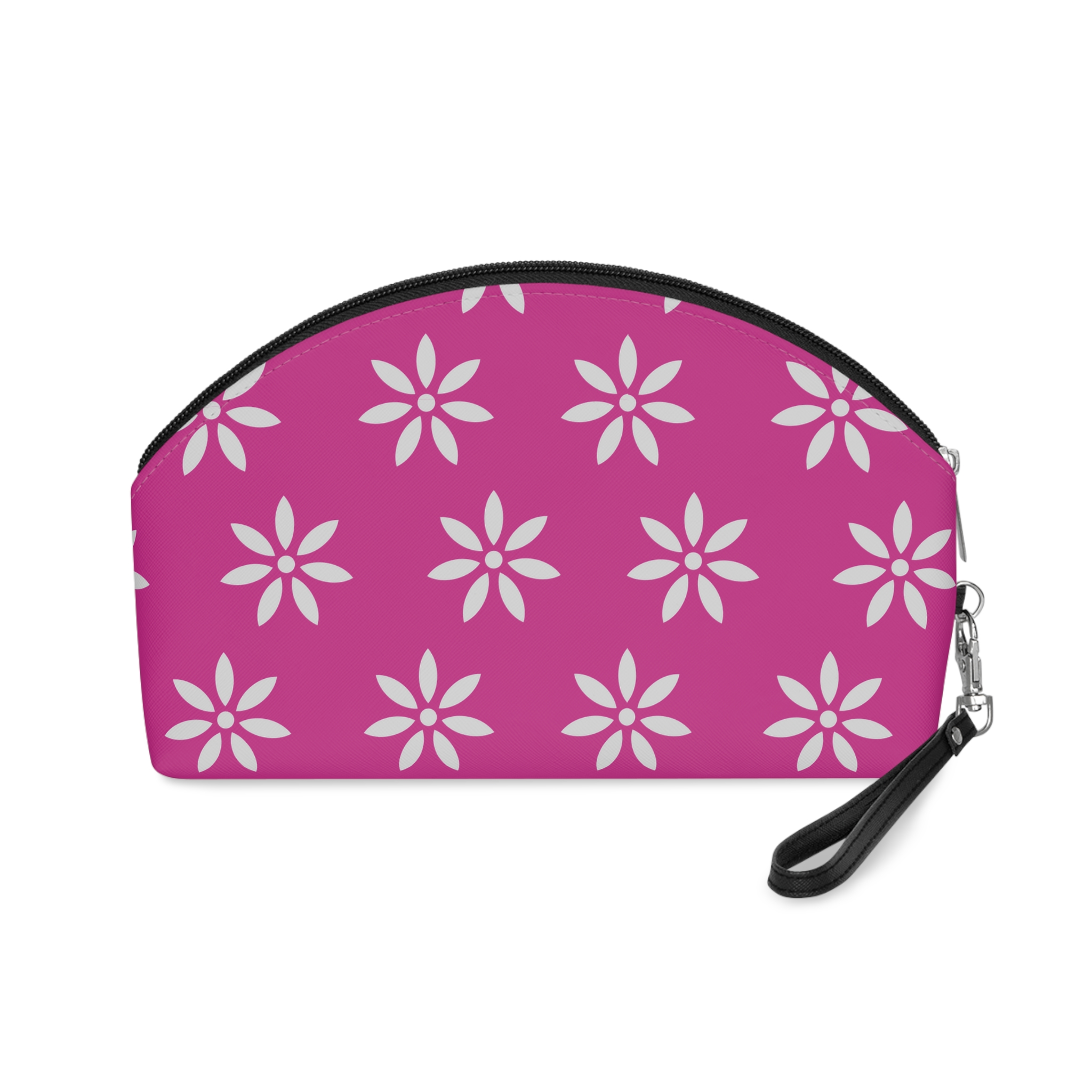 There’s more to makeup bags than meets the eye. Their main purpose is to store cosmetics, but they’re often used to carry travel essentials, like cables, headphones, medicine, hygiene products. Some even use them as art supply cases. These curve-top bags will be the top multi-purpose item in any home with your unique design. They have a zipper for safety and a removable leather strap for comfort.