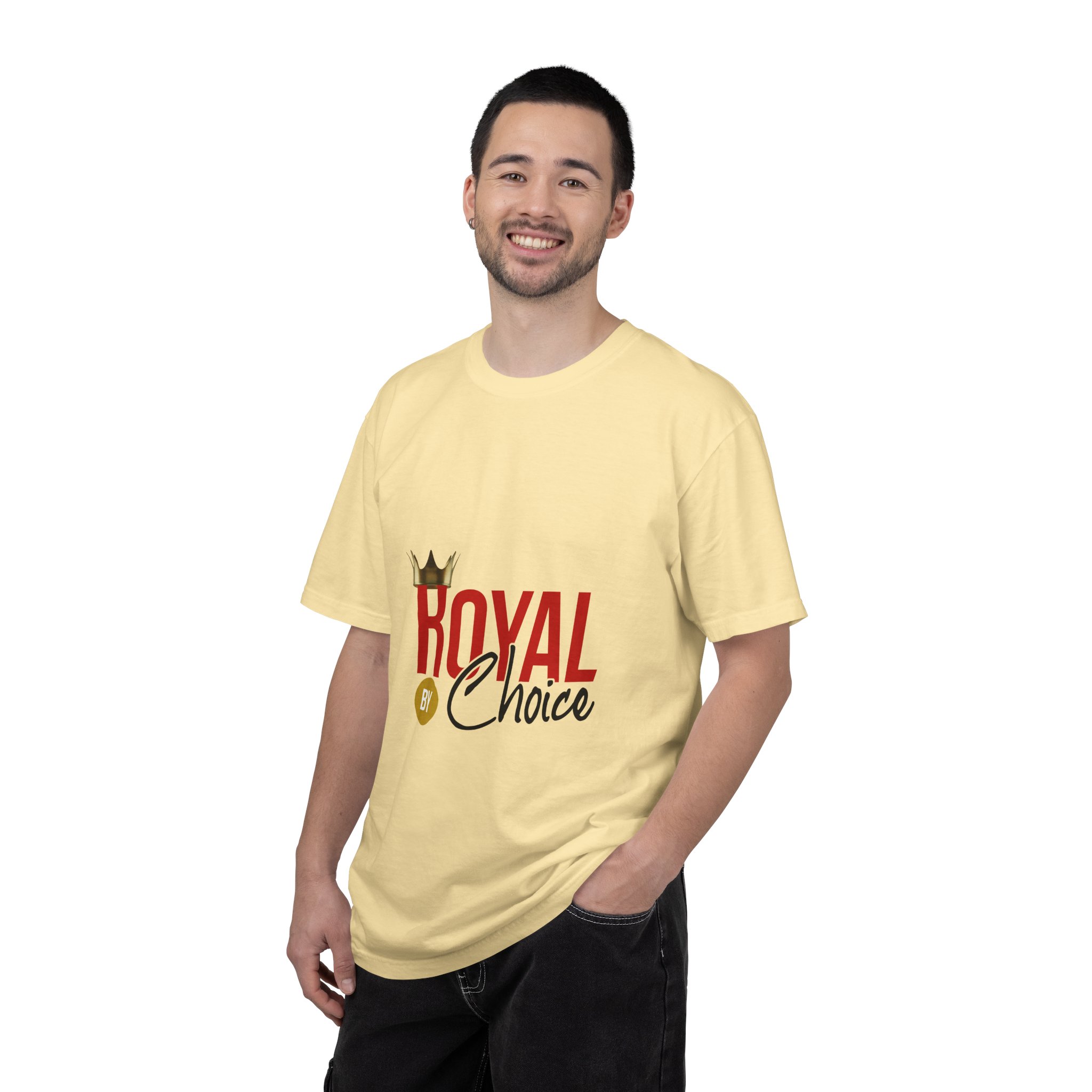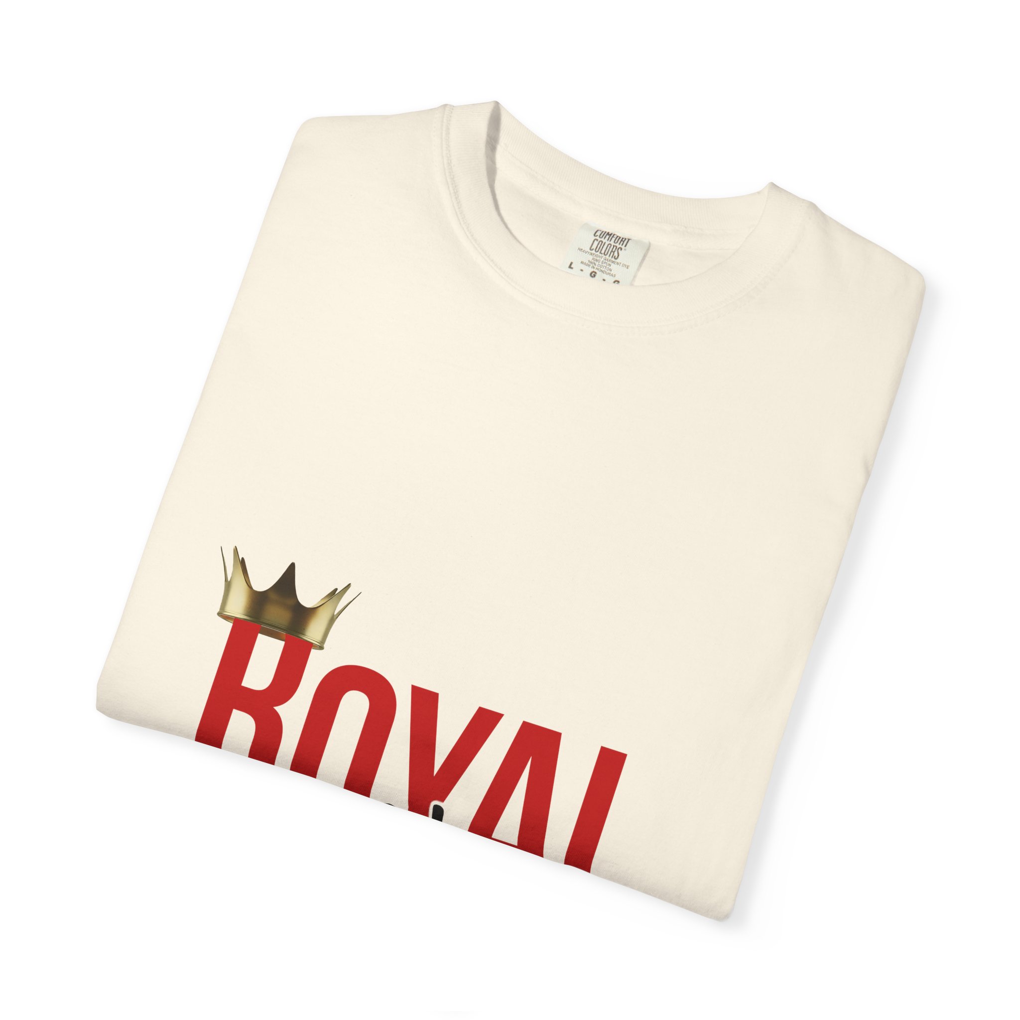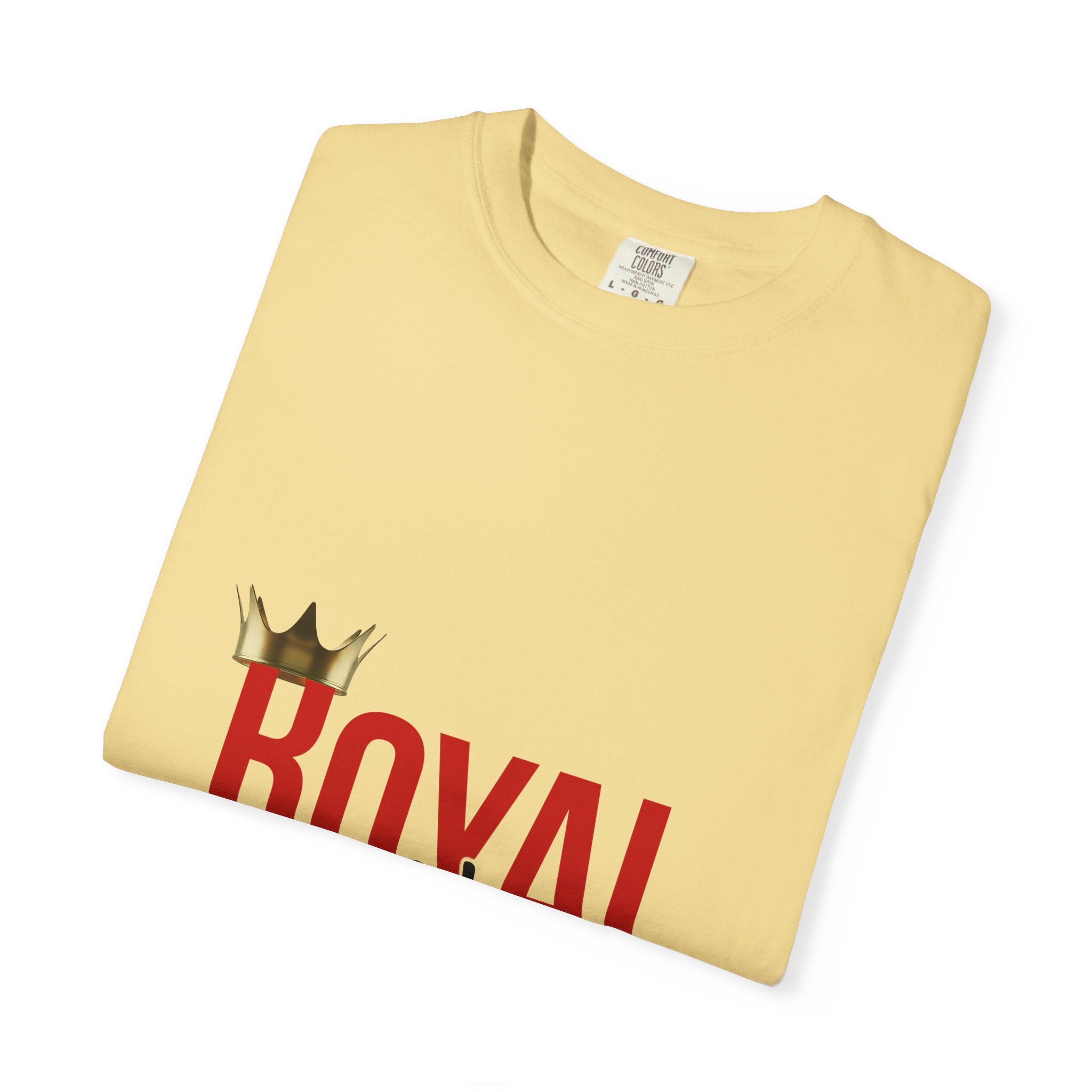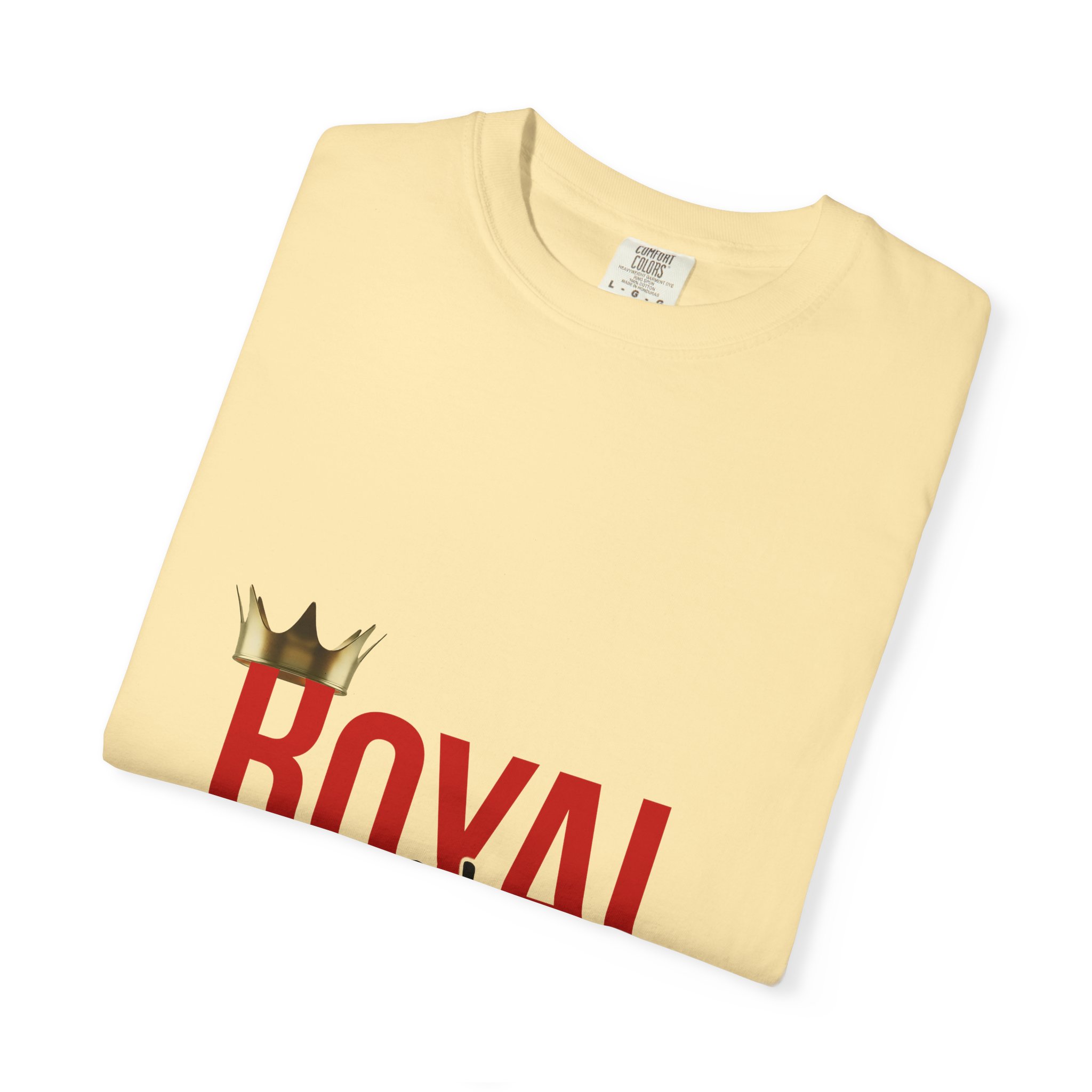 This relaxed-fit cotton tee carries quiet confidence. The garment-dyed fabric gives the shirt a soft, worn-in feel and gentle color depth that complements the bold crown artwork on the front. Lightweight but substantial, it drapes easily — the tubular knit and lack of side seams create a clean silhouette while double-needle stitching keeps it durable wash after wash. Wear it when you want a low-key statement: pair with jeans for weekend errands, layer under a jacket for cooler nights, or bring it along to casual meetups where comfort and presence matter.